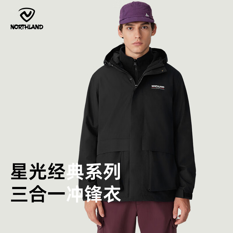 诺诗兰【伊吾】秋冬户外男女三合一抓绒冲锋衣防水三防徒步硬壳冲锋衣 纯黑色-06E男 170