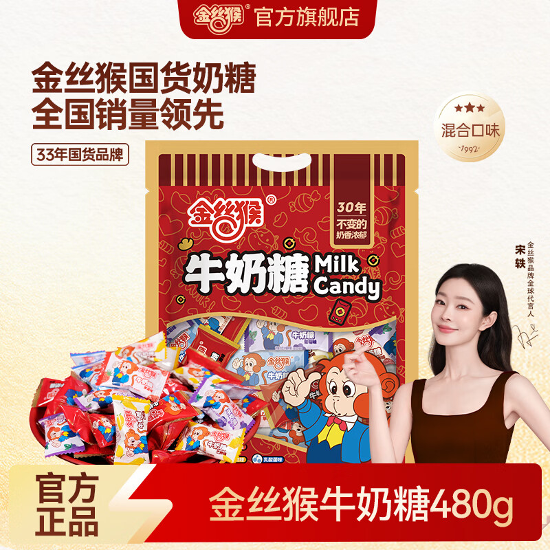 金丝猴 特浓牛奶糖 480g 约160颗 混合口味 结婚订婚喜糖 糖果 礼物