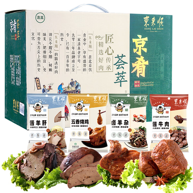 东来顺酱牛肉熟食礼盒烧鸡羊杂羊肝年货春节送礼开袋即食纯肉礼品1150g