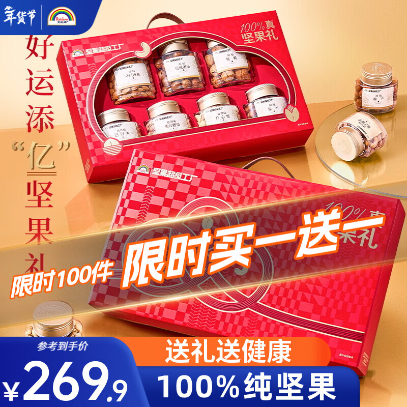 天虹牌纯坚果礼盒炒货干果休闲零食大礼包团圆高端团购年货送礼2盒装 【2.42kg/2盒】天虹牌坚果礼盒