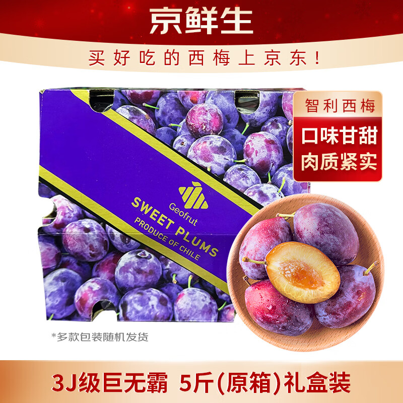 京鲜生 智利进口西梅3J级巨无霸5斤礼盒装 单果重30g起 水果年货礼盒
