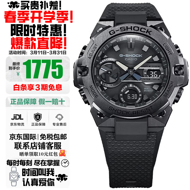卡西欧(CASIO)王一博明星同款太阳能多功能蓝牙连接对时运动手表男情人节礼物 钢铁黑暗之心GST-B400BB-1A