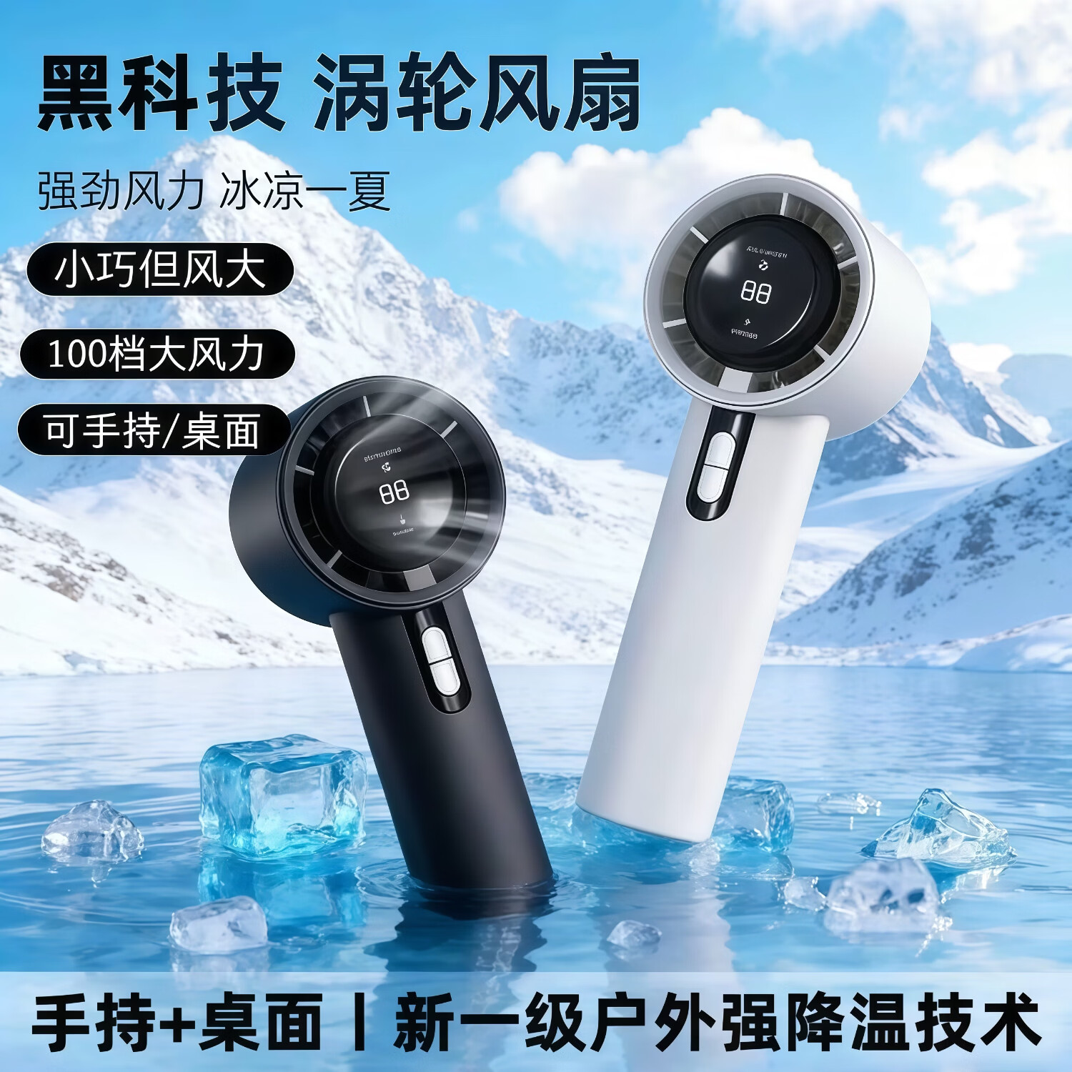 艾勒丝汀【冰感小风炮丨高速涡轮压缩】手持小风扇超长续航冷风小型风扇迷你便捷式手拿静音数显大风力随身 石墨黑【高速飓风·超导冰磁降温】 3000mAh 100档空调级降温