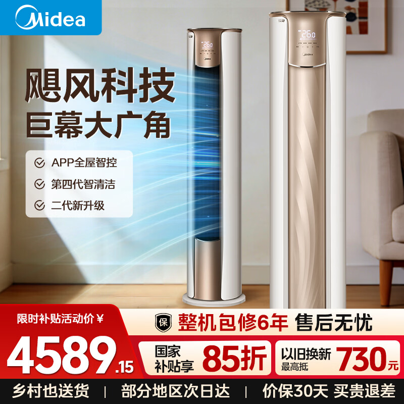 美的(Midea)空调柜机3匹家用柜机新一级能效节能 全直流变频制冷暖加大风口圆柱立式客厅柜机空调 3匹一级能效锐静二代 冷暖快调