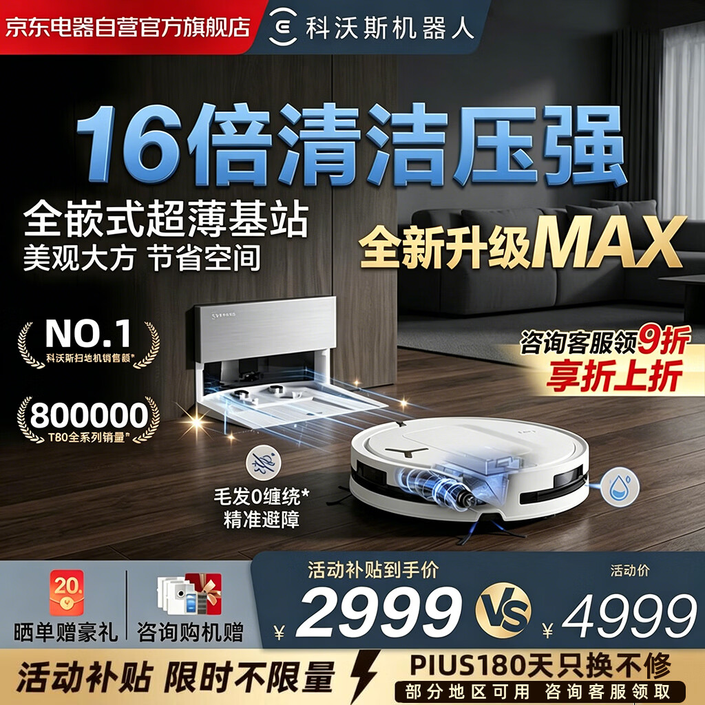 科沃斯T80S扫地机器人滚筒活洗扫地拖地一体机自动清洗