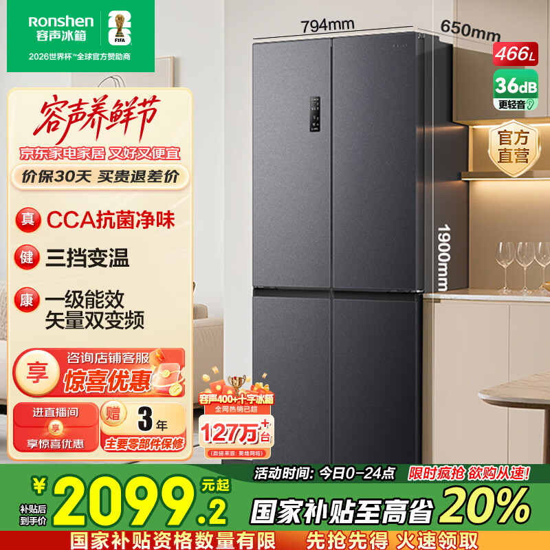 ÈÝÉù466ÉýÊ®×ÖË«¿ªËÄ¿ªÃŵç±ùÏä¼ÒÓÃÒ»¼¶ÄÜЧ·çÀäÎÞ˪±äƵ½ÚÄܳ¬±¡´óÈÝÁ¿BCD-466E30CNLAD¼Òµç¹ú¼Ò²¹Ìù BCD-466E30CNLAD