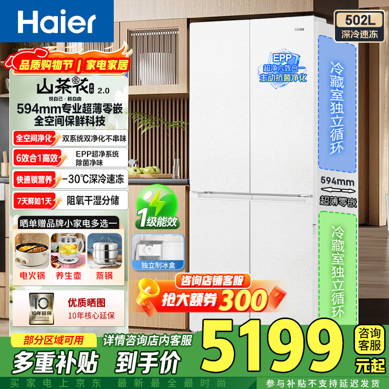 º£¶û£¨Haier£©É½²è»¨2.0±ùÏä502ÉýÊ®×ÖÃÅ 594mm³¬±¡ÁãǶȫ¿Õ¼ä±£ÏÊ˫ϵͳ˫¾»»¯²»´®Î¶µç±ùÏäBCD-502WGHTD1CWLU1