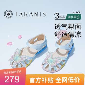 泰兰尼斯女童公主凉鞋夏季新款儿童鞋小女孩软底包头鞋子 蓝彩 23码 适合脚长14.0cm