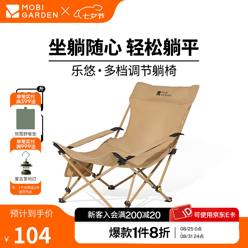 牧高笛(MOBIGARDEN)乐悠躺椅 户外露营多档调节休闲椅轻量午休便携躺椅 细沙黄
