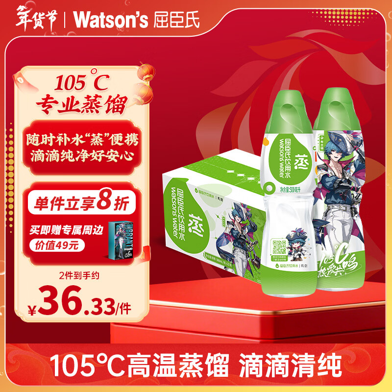 屈臣氏蒸馏水纯净水500mL*22瓶整箱瓶装水礼盒款角色B(随箱赠礼品1份)