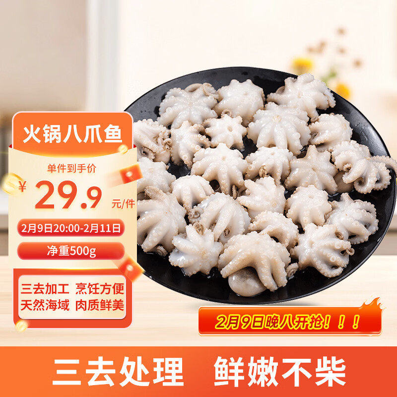 美加佳 三去章鱼仔净重1斤(12-25只)火锅八爪鱼 去牙去脏 年货聚餐