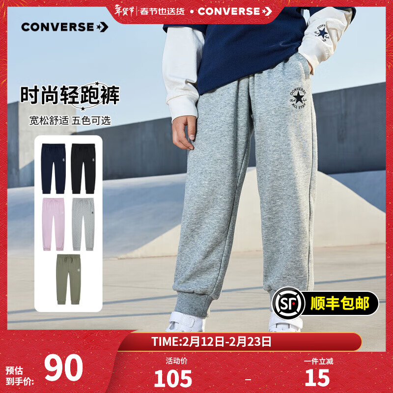 Converse匡威童装男童长裤春季新款中大童女童休闲运动裤百搭束脚卫裤 岩岭灰 140 /60 【建议身高128-140cm】