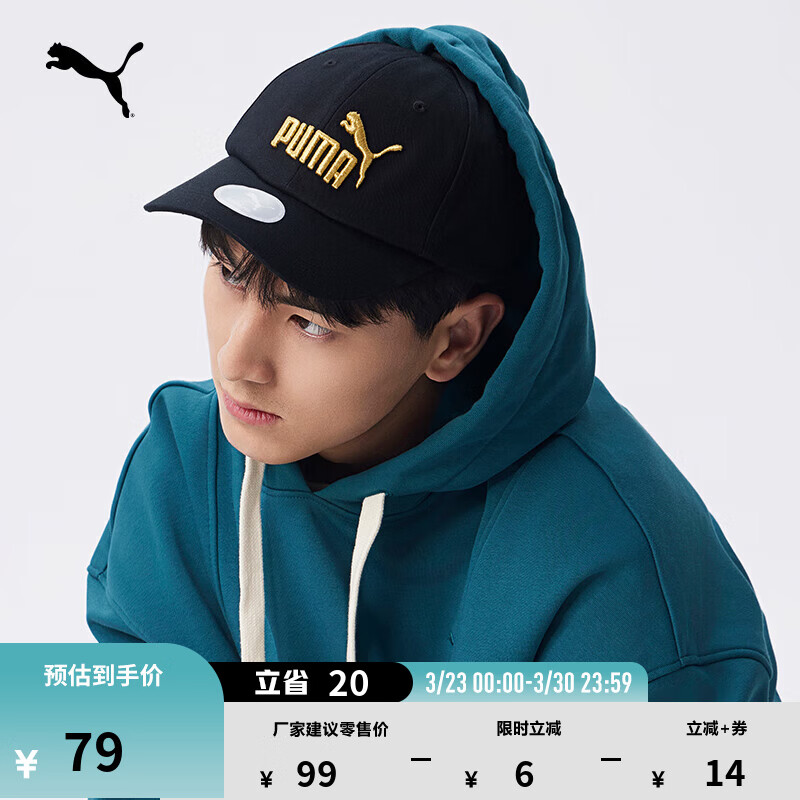 彪马(PUMA)遮阳刺绣棒球帽鸭舌帽男女情侣新款休闲运动帽025907 黑色-金色-logo-09 OSFA