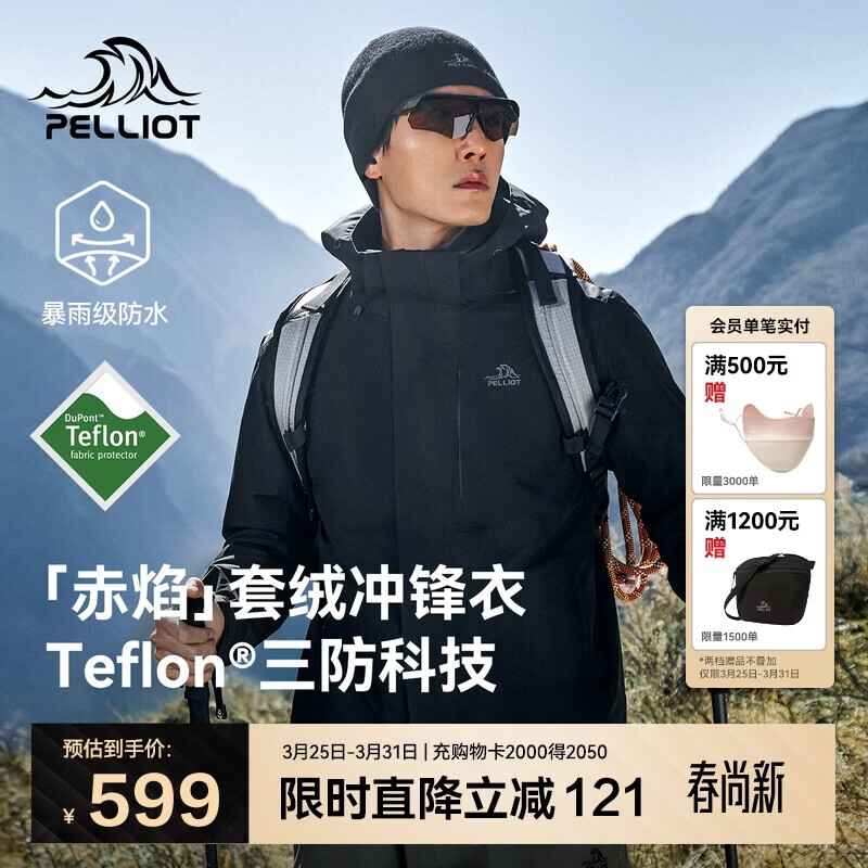 德尔惠(DEERWAY)户外徒步登山软壳夹克情侣运动夹克春秋防风防水透气连帽外套长裤 墨黑男女同款 S 【建议90-105斤】