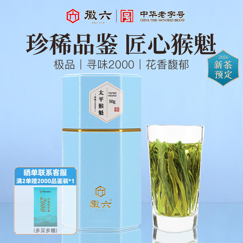 徽六2026新茶预定 绿茶太平猴魁茶叶50g 寻味2000极品雨前捏尖自己喝