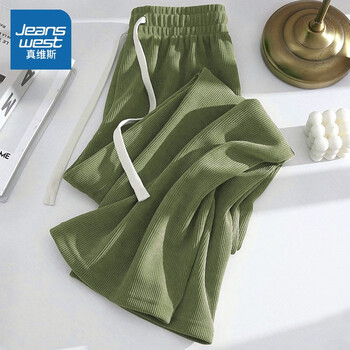 真维斯(JEANSWEST)雪尼尔阔腿裤女春秋薄款2024新款垂感窄版直筒休闲针织长裤女装 豆绿 纯色 L