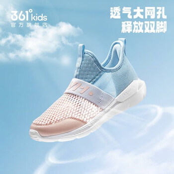 361°儿童运动鞋男女童跑步鞋夏季新款大网孔透气中大小童一脚蹬鞋子 黛粉色/水清蓝色/361度白 33码 大童