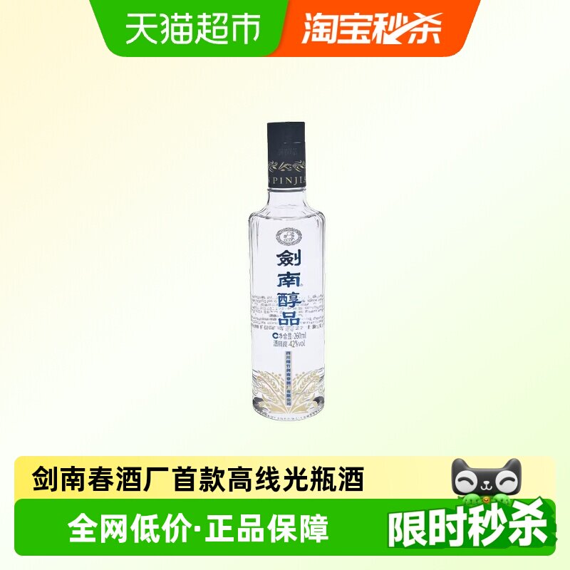 剑南春酒厂首款嫡系高线光瓶酒剑南醇品蓝晶剑浓香42度260ml