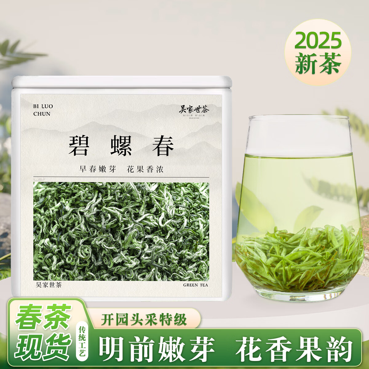 吴家世茶碧螺春 2025年新茶开园头采特级绿茶叶明前嫩芽花果香高山云雾茶 50g*1罐