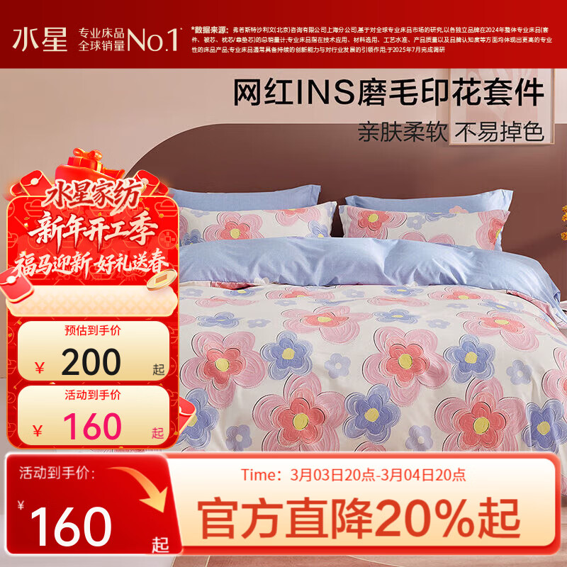 水星家纺出品百丽丝 床上四件套秋冬磨毛 耐洗耐磨不易掉色床单被罩 花语【耐洗耐用】 1.5米床 床单款 (被套200*230cm)