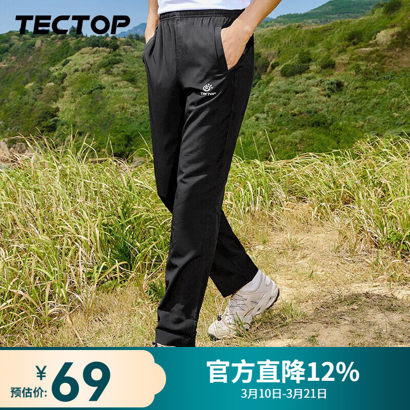 探拓(TECTOP)速干裤男耐磨弹力快干修身女透气运动裤子 男款黑色 2XL