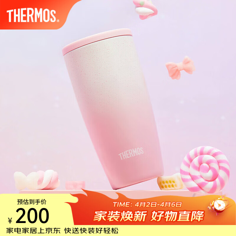 膳魔师(THERMOS)保温杯不锈钢便携咖啡杯家用办公杯子高颜值情侣水杯糖霜杯TCDM 草莓糖霜 400ml