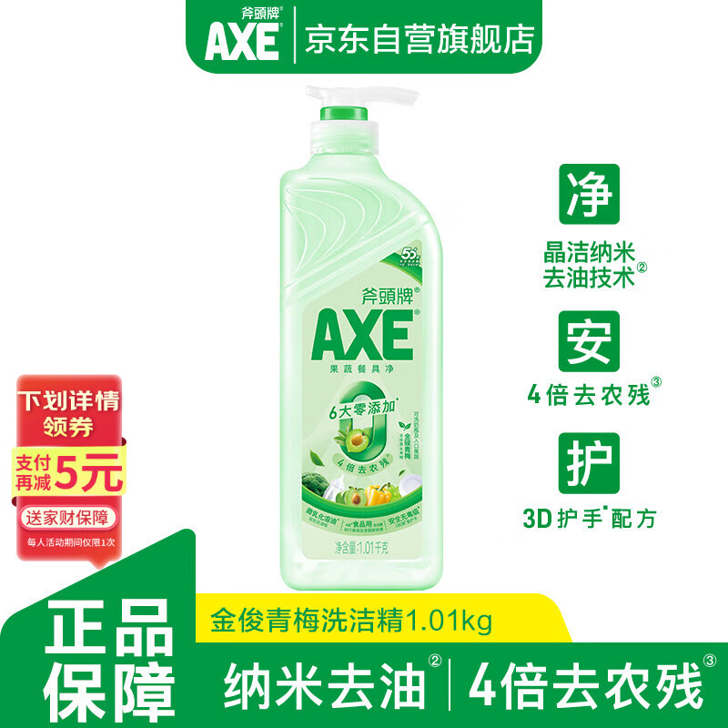 斧头金骏青梅果蔬餐具净洗洁精1.01kg泵6大零添加4倍去农残小苏打