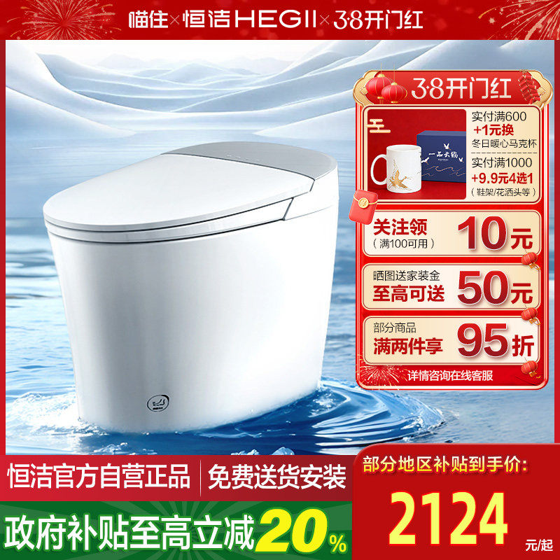 【政府补贴】恒洁智能马桶全自动家用零压H3脚感