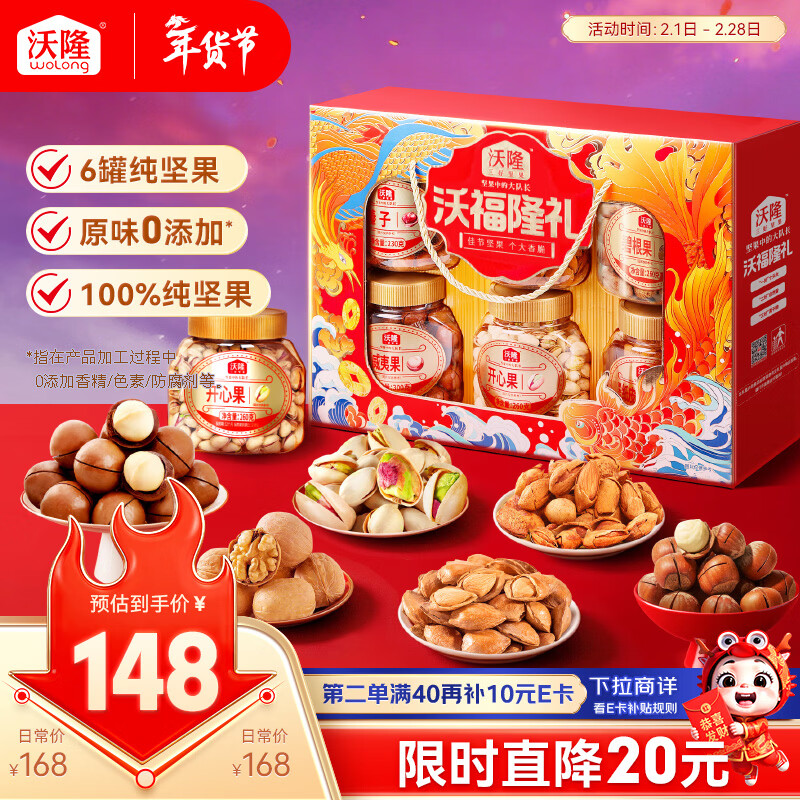 沃隆纯坚果礼盒6罐1.52kg沃福隆礼开心果干果零食炒货大礼包节日礼盒