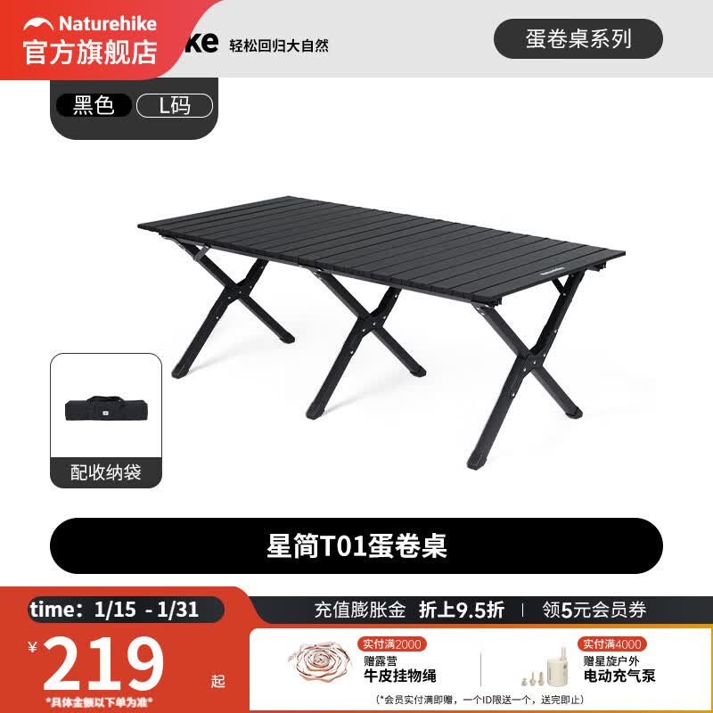 挪客蛋卷桌户外露营轻量化便携折叠桌野营野餐野炊桌椅装备全套一体 黑色-大号【4-6人】