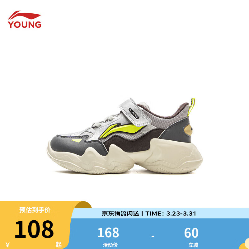 李宁童鞋儿童运动鞋男女小童轻便软弹魔术贴休闲鞋YKNV071 水晶灰/银色-5 26