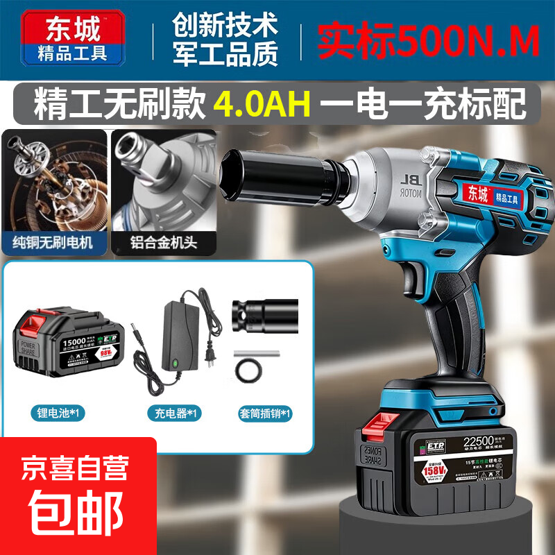 东城无刷电动扳手大扭力冲击电风炮工业级充电板子架子工套筒两用 【实标500N】4.0AH一电标配