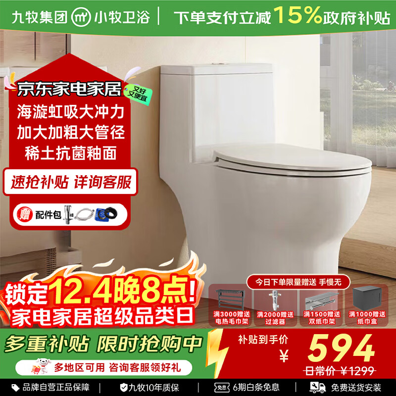 九牧(JOMOO)马桶小牧优品家用大冲力防臭陶瓷节水一体座便器3700 抗菌釉面/海旋虹吸-3700 305/300mm 【免费安装/6年质保】