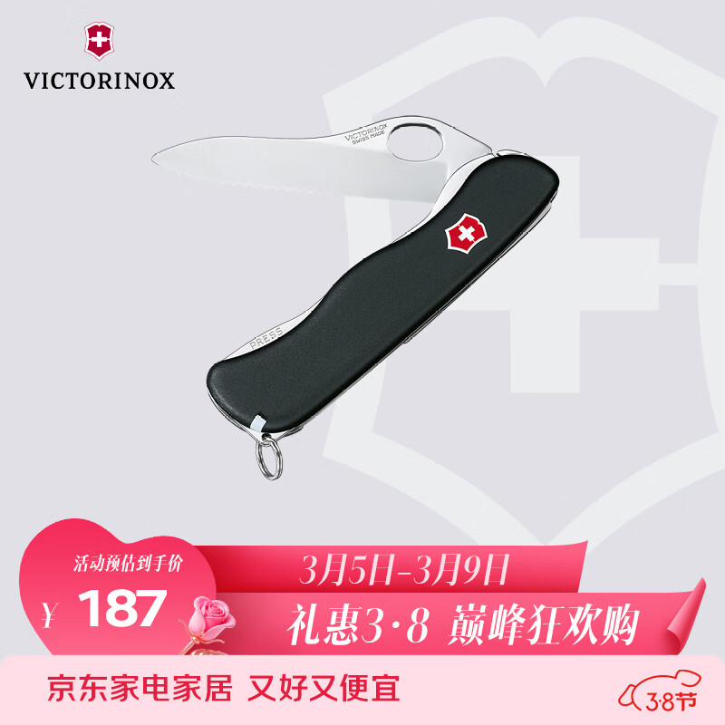 维氏维氏瑞士军刀哨兵波浪刃水果刀刀折叠刀具黑色0.8413.MW3