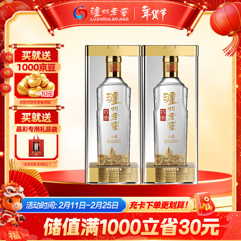 泸州老窖 特曲晶彩 浓香型 高度白酒 52度500ml*2双瓶装 纯粮宴请 含礼袋