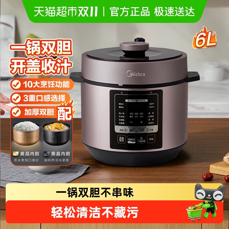 美的电压力锅6升家用大容量电饭煲5升高压锅2-6