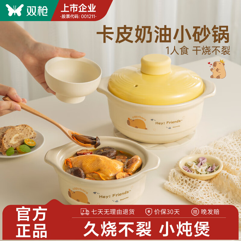 双枪砂锅煲家用燃气灶专用煲汤耐高温干烧不裂煲仔饭沙锅小砂锅 中号卡皮砂锅(小家庭食用) 2.8L