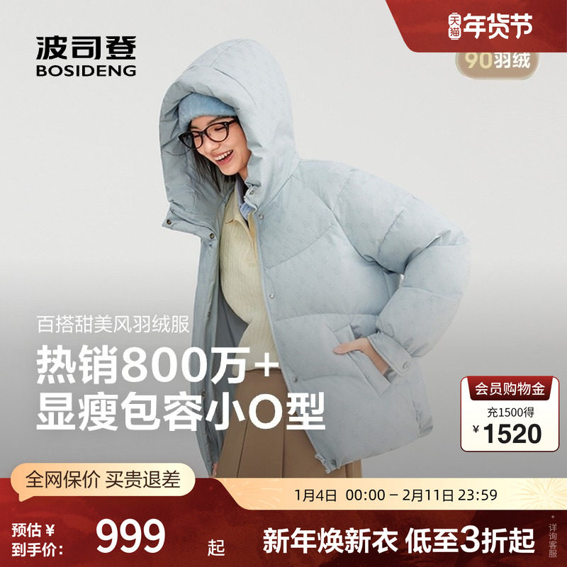 波司登奥莱2025新款羽绒服女简约时尚短款百搭厚面包服冬季连帽