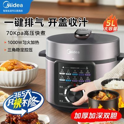 美的电压力锅家用高压锅5L大容量多功能不粘双胆1000W智能电饭煲