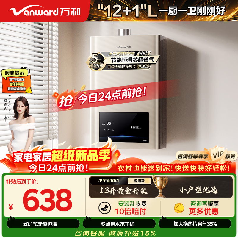 ÍòºÍСÓîÖæ¡¾Ë®ÆøË«µ÷BE1 13L¡¿ÌìÈ»ÆøË®ÎºãμÒÓÃÊ¡ÆøËÙÈÈ·À¶³Ç¿ÅÅʽÉÏÃŰ²×° 13BE1È¼ÆøÈÈË®Æ÷