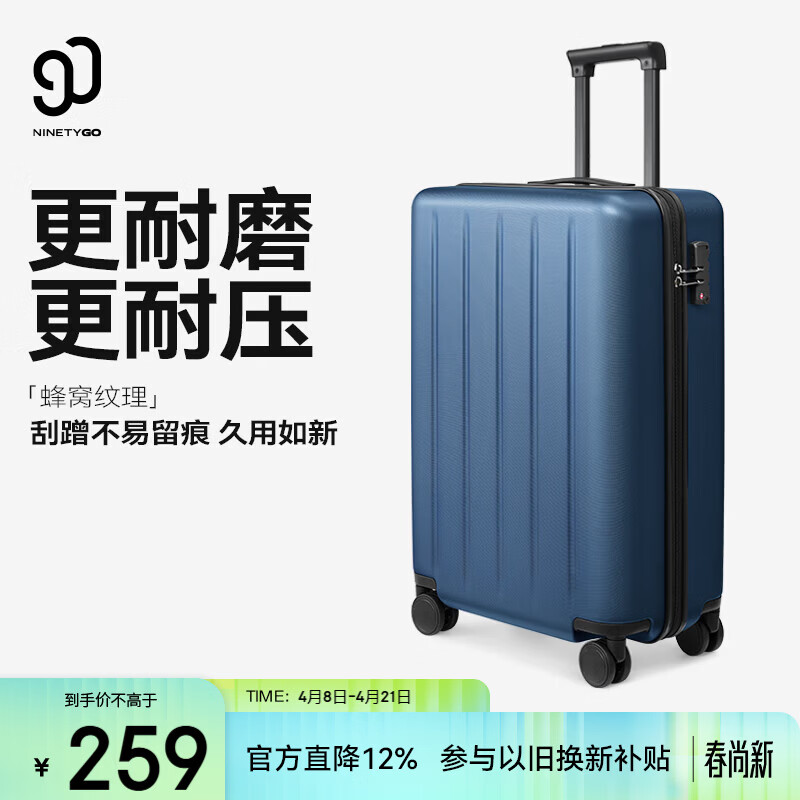 90分行李箱20英寸拉杆箱商务可登机旅行箱密码箱子多瑙河蓝色