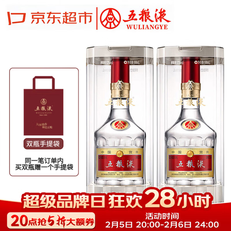 五粮液 普五八代 2024年 浓香型白酒 52度 500ml*2 双瓶