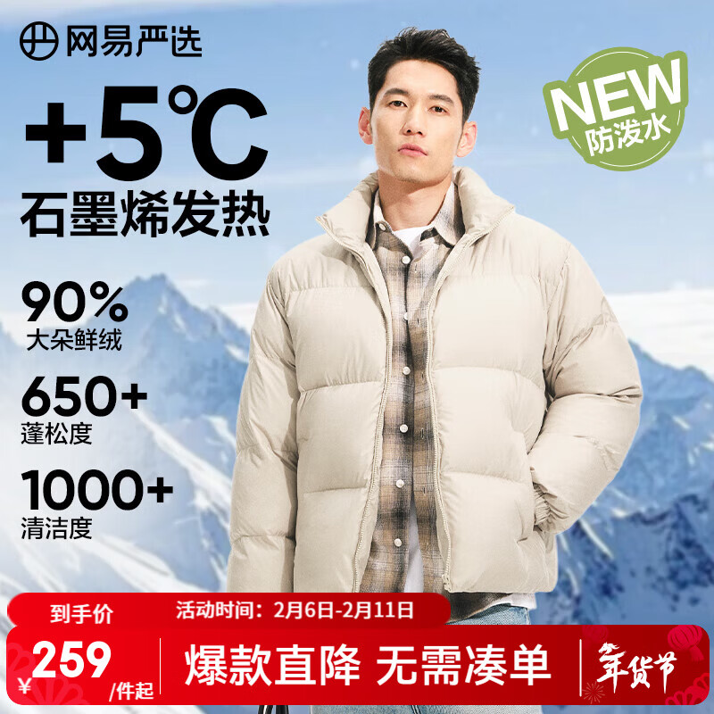 网易严选25新品90鸭绒超蓬羽绒服休闲面包服石墨烯保暖轻量抗菌防泼水 A款25秋冬立领-卡其米 L