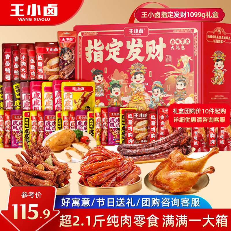 王小卤虎皮凤爪 指定发财礼盒1099g 肉类零食礼盒 年货礼盒春节送礼 指定发财礼盒1099g
